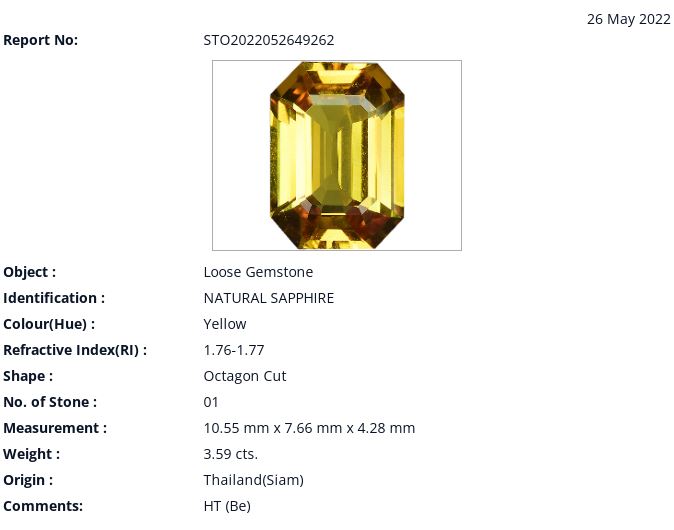 [SOLD] 10.55x7.66mm Octagonal Yellow Sapphire Certificated (SAYE10576)