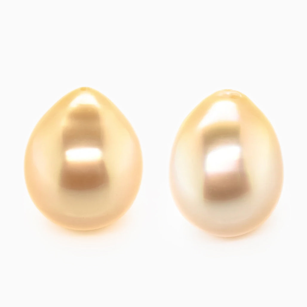 [SOLD] 14x10mm Natural Golden Half-Drilled Freshwater Drop Pearls (PSGD1500)