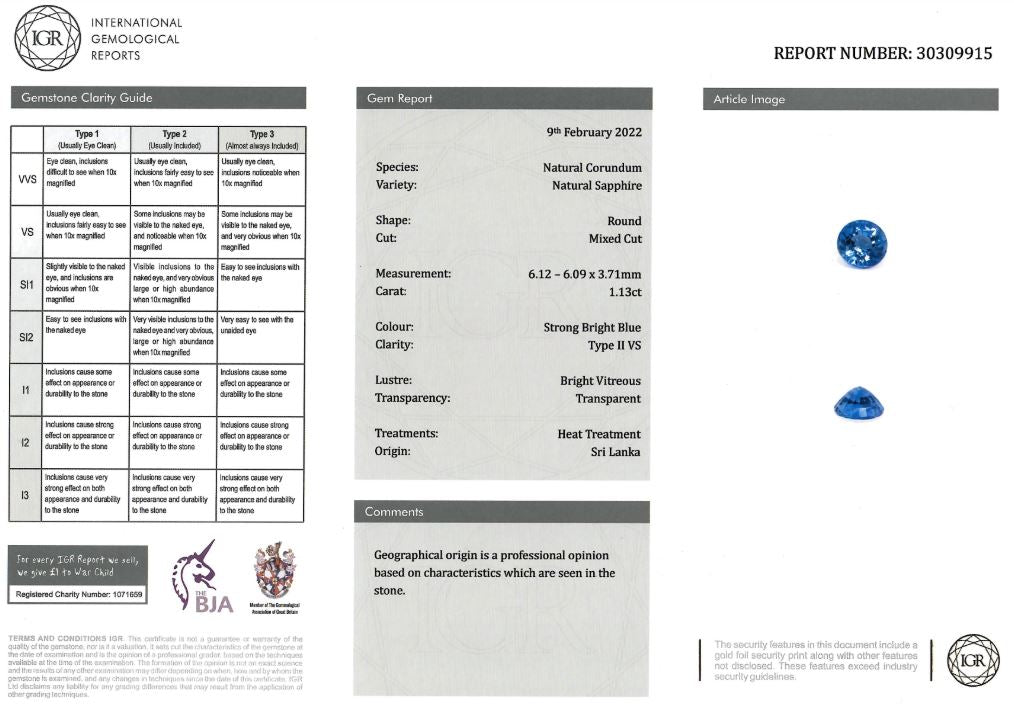 [SOLD] 6.12-6.09mm Round Ceylon Sapphire Certificated (SAR113)