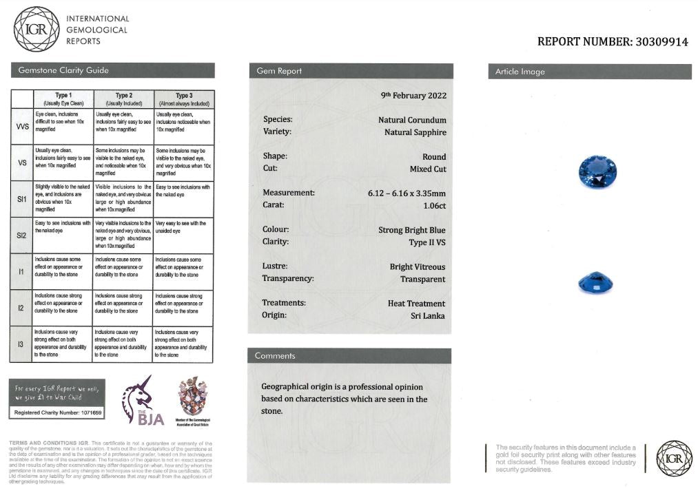 6.12-6.16mm Round Ceylon Sapphire Certificated (SAR112)