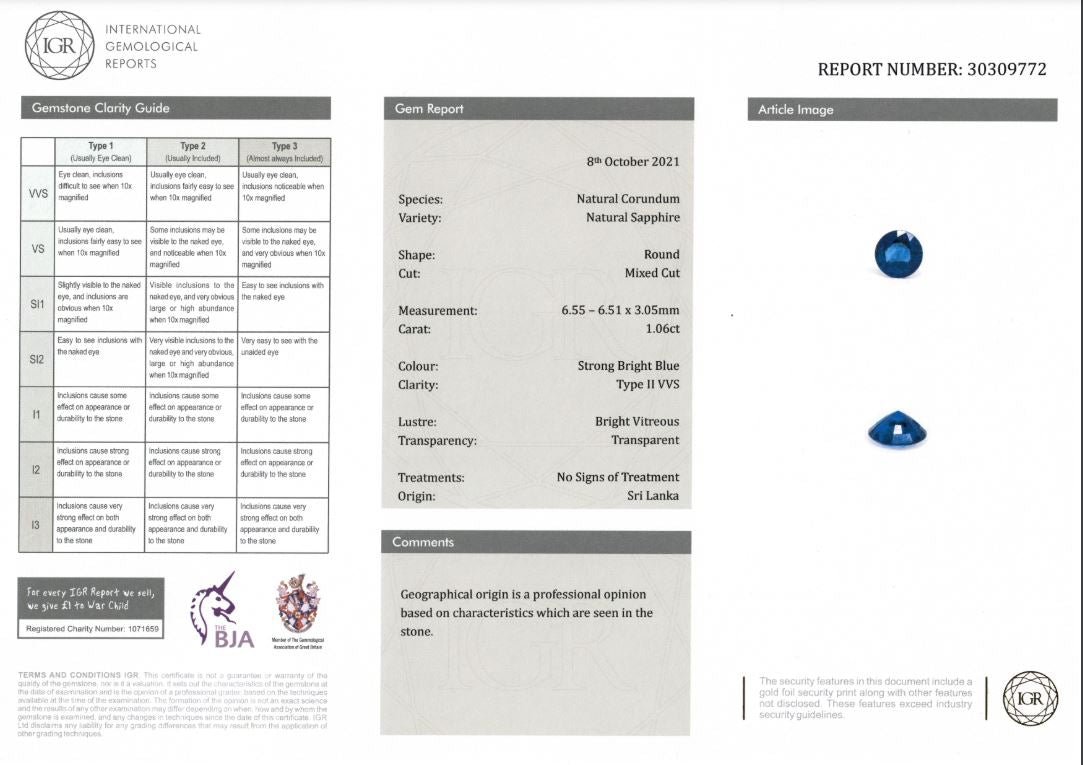 [SOLD] 6.55mm Round Ceylon Sapphire Certificated (SACR011)