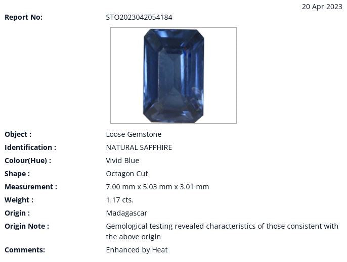 7.00x5.03mm Octagonal Madagascan Sapphire Certificated (SACE128)