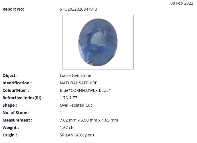 7.02x5.9mm Oval Unheated Sapphire Certificated (SAV159)