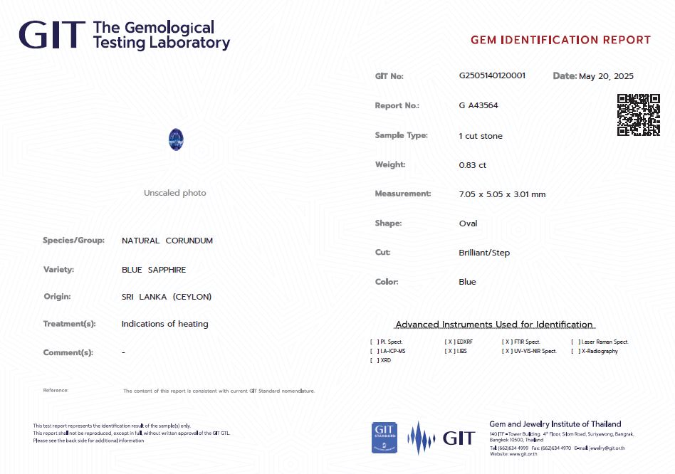 7.05x5.05mm Oval Ceylon Sapphire Certificated (SACV021)