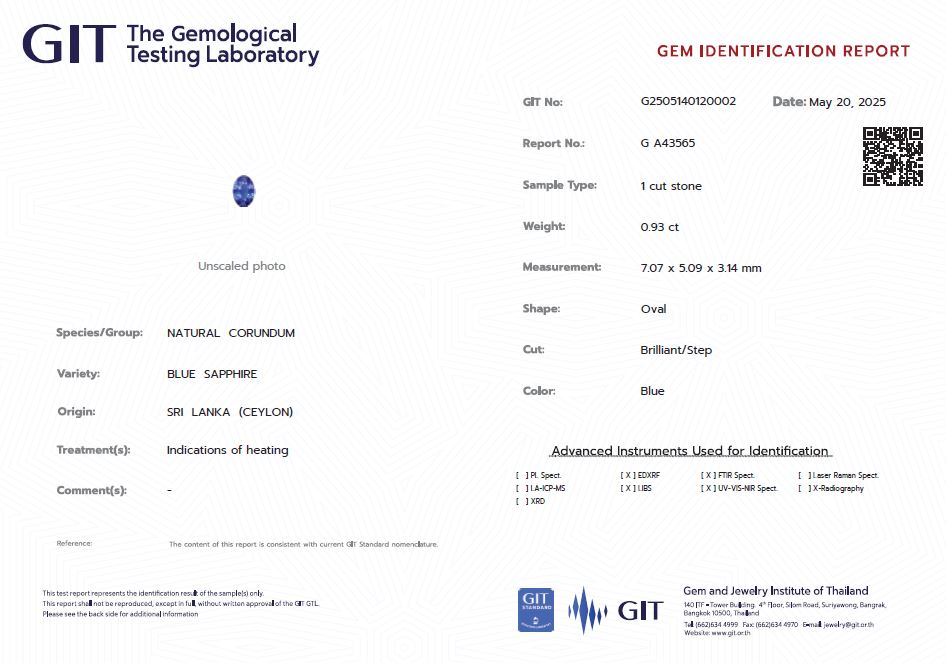 7.07x5.09mm Oval Ceylon Sapphire Certificated (SACV022)