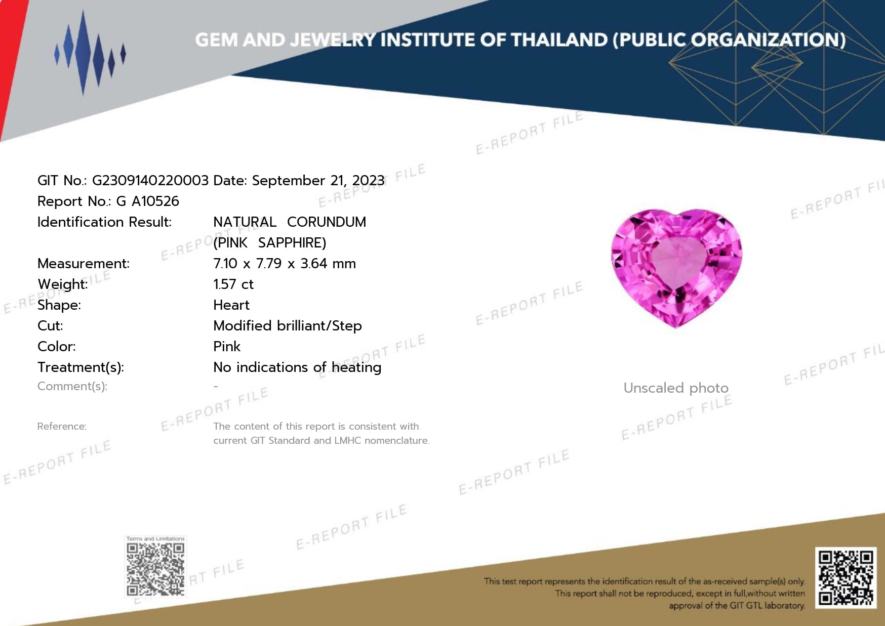 7.10 x 7.79mm Heart Shape Pink Unheated Sapphire - Certificated (SAPH78)
