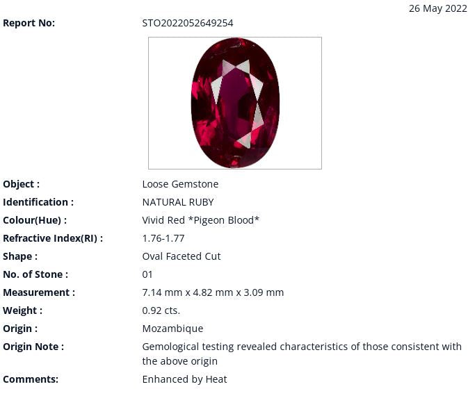 [SOLD] 7.14x4.82mm Oval Ruby Certificated (RUV109)
