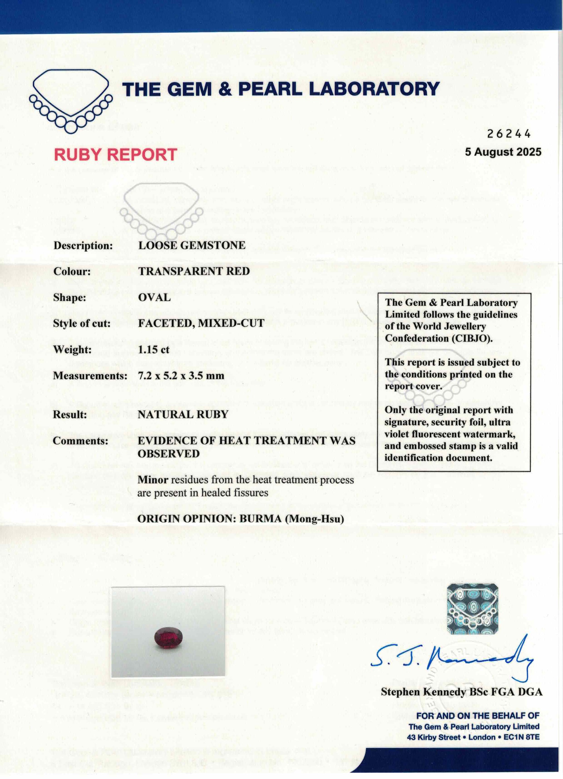 7.26x5.20mm Oval Burmese Ruby - Certificated (RUV75AAX)