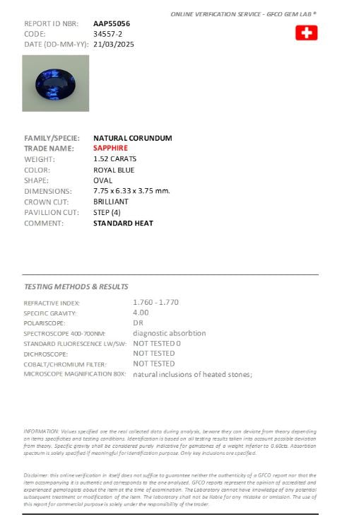 7.75x6.33mm Oval Ceylon Sapphire Certificated (SACV013)