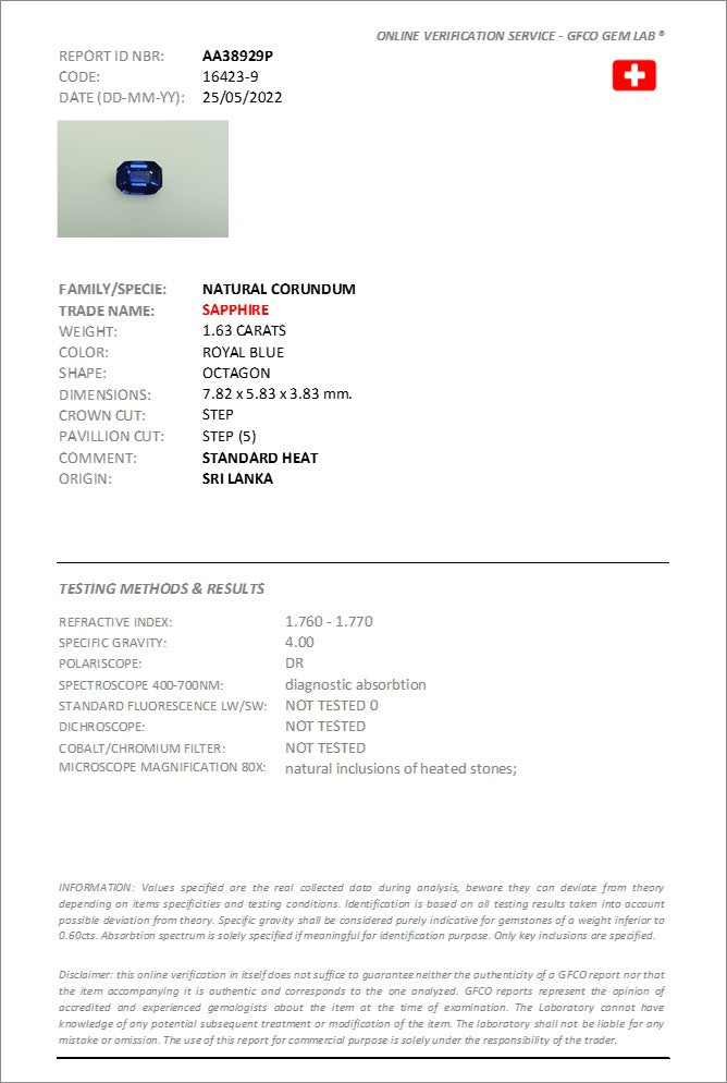 7.82x5.83mm Octagonal Ceylon Sapphire - Certificated (SACE120)