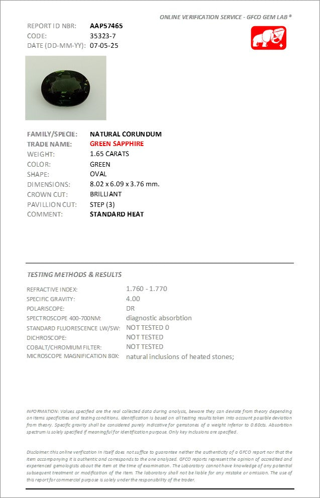 8.02x6.09mm Oval Green Sapphire Certificated (SAGV012)