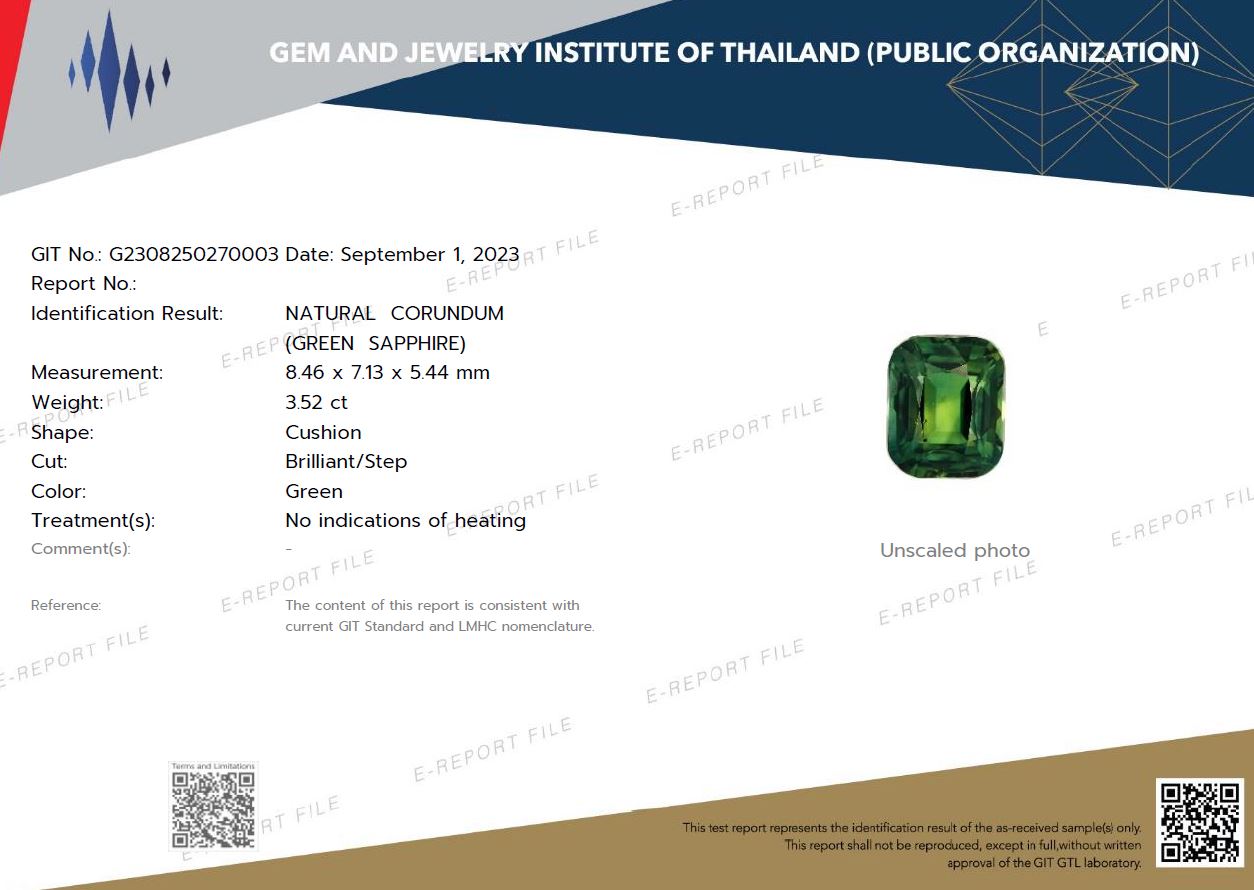 8.46x7.13mm Cushion Green Sapphire No Heat Certificated (SAGCU004)