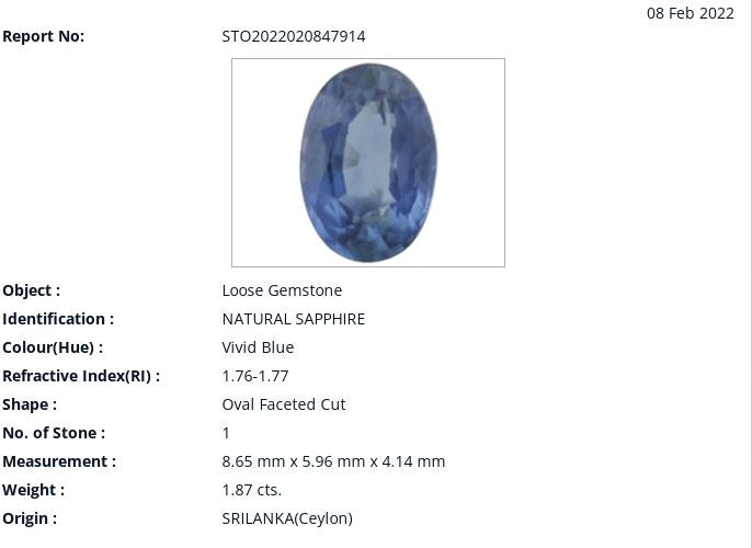 [SOLD] 8.65x5.95mm Unheated Oval Sapphire Certificated (SAV160)