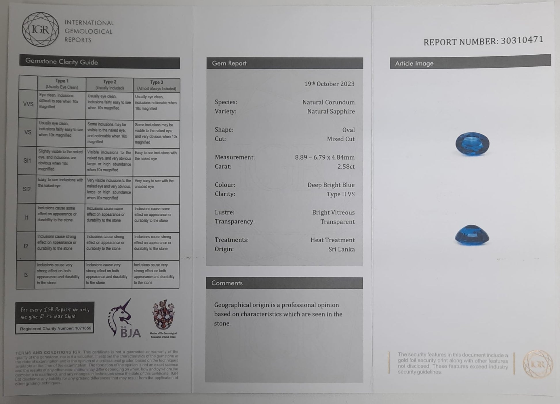 - IGR Certificated 30310471