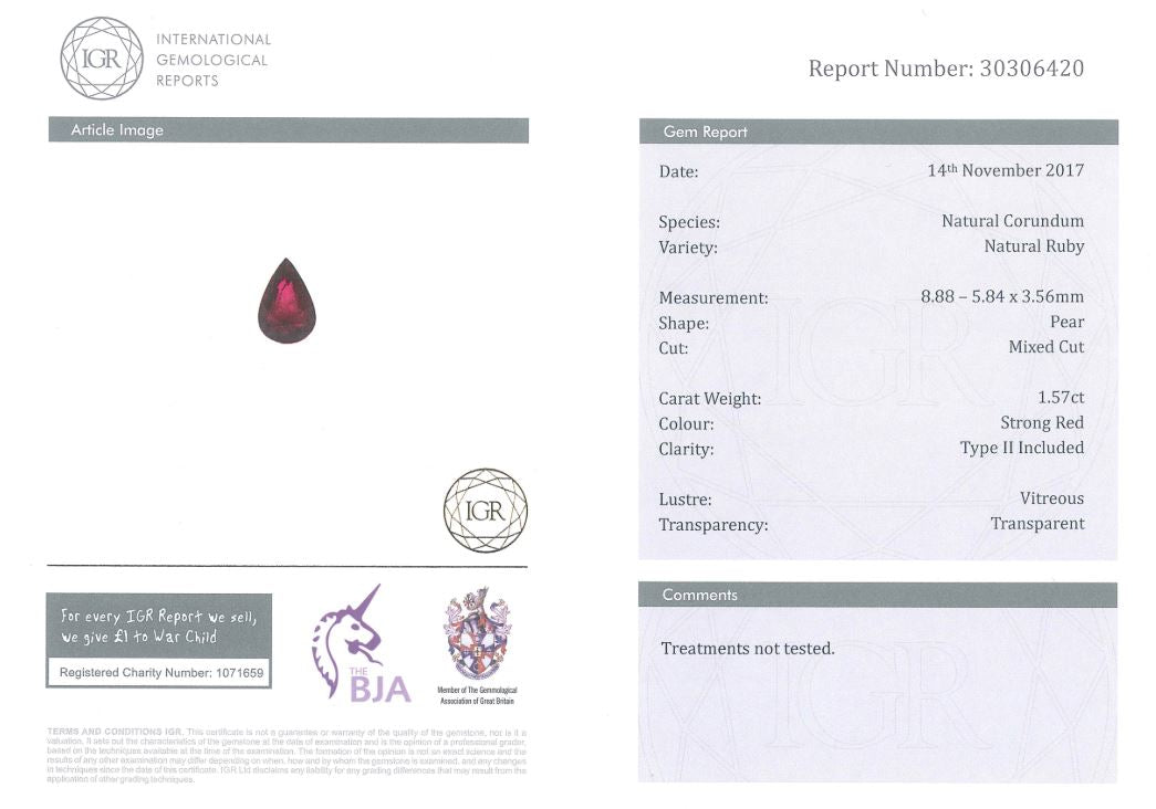8.88x5.84mm Pear-Shaped Ruby - Certificated (RUP89W)