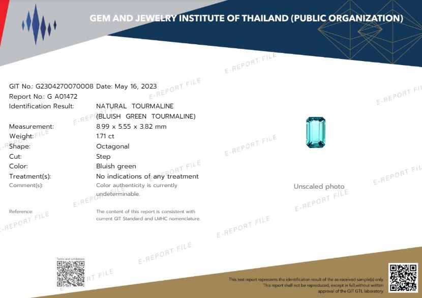 8.99x5.55mm Octagonal Teal Tourmaline Certificated (TOGE002)
