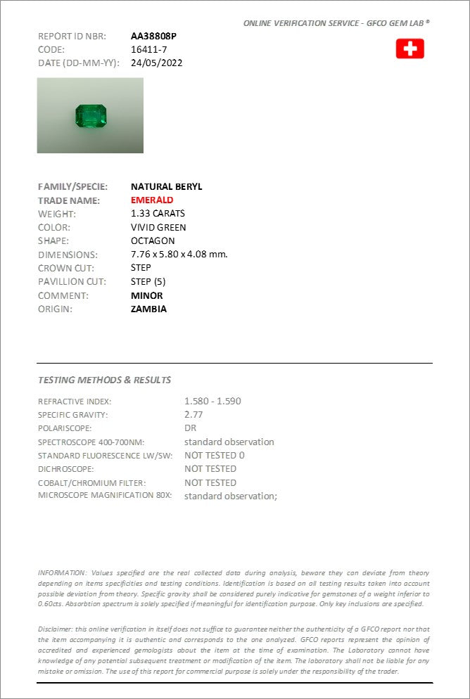 7.76x5.8mm Octagonal Zambian Emerald - Certificated (EME013)
